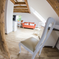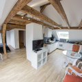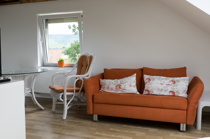 Zur Alleinnutzung oder bis zur 3 Personennutzung ist ein Wohnbereich mit Schlafsofa eingerichtet.
